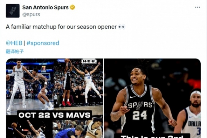 马刺官推晒照表示:“揭幕战又迎来了一个熟悉的对手👀。”